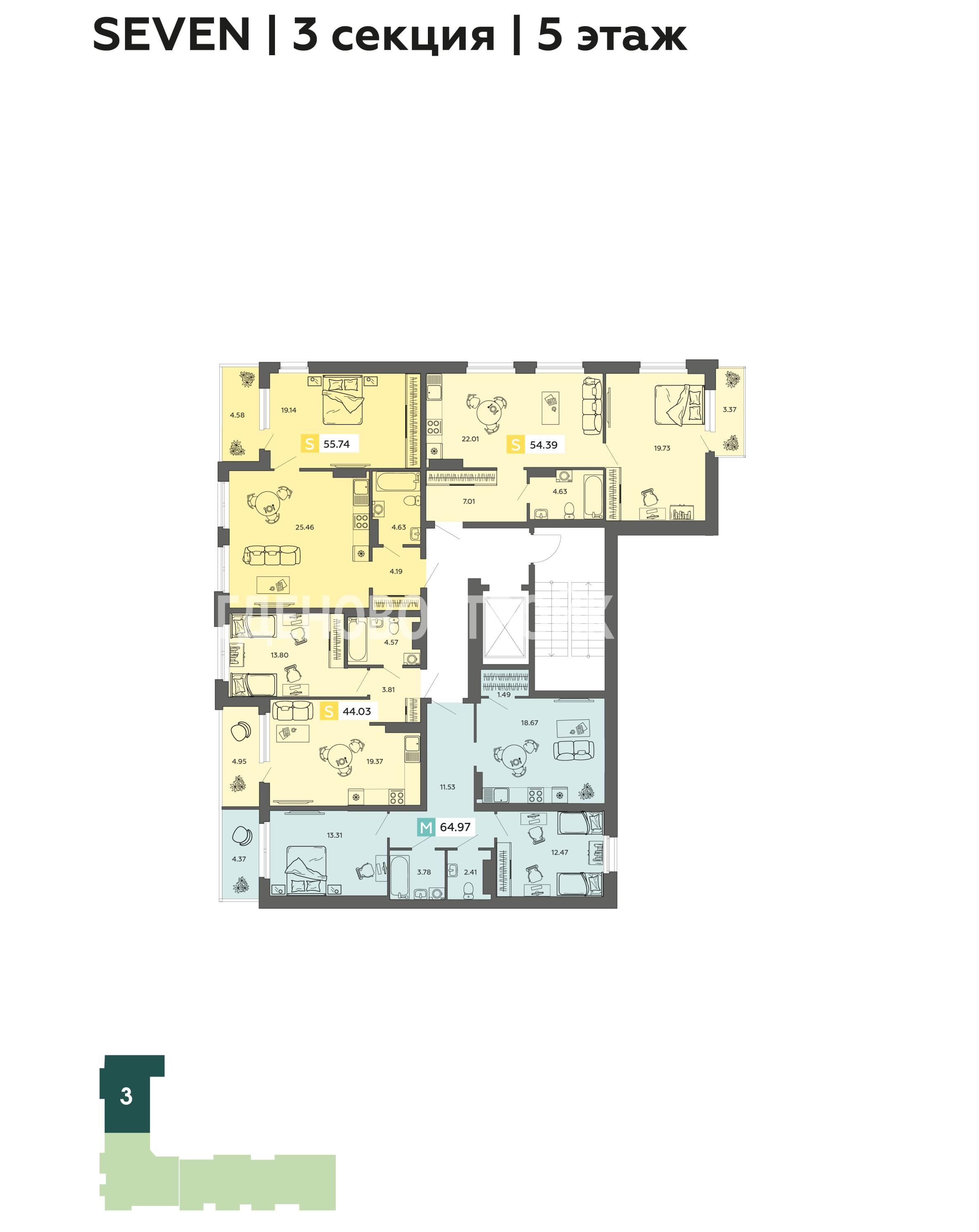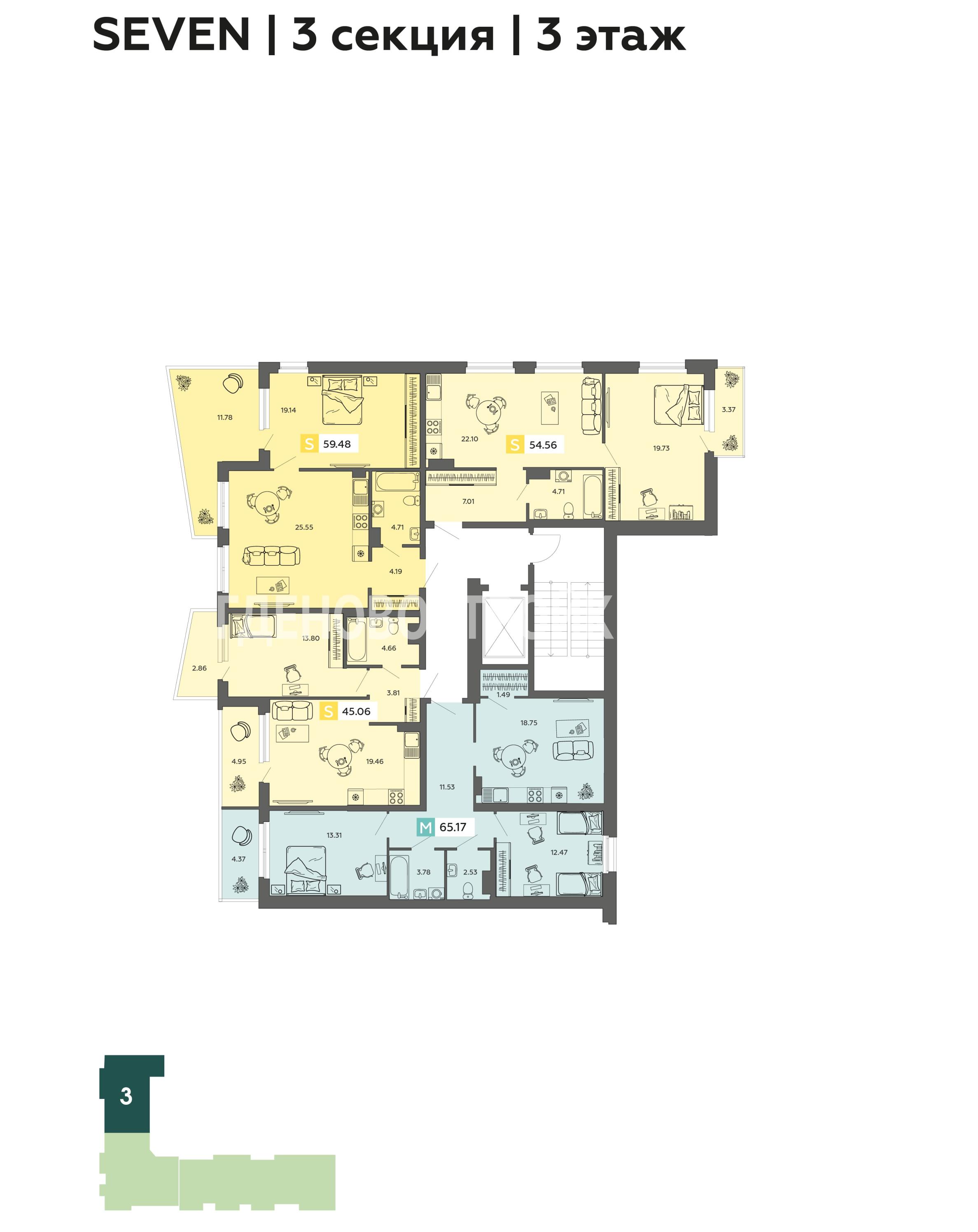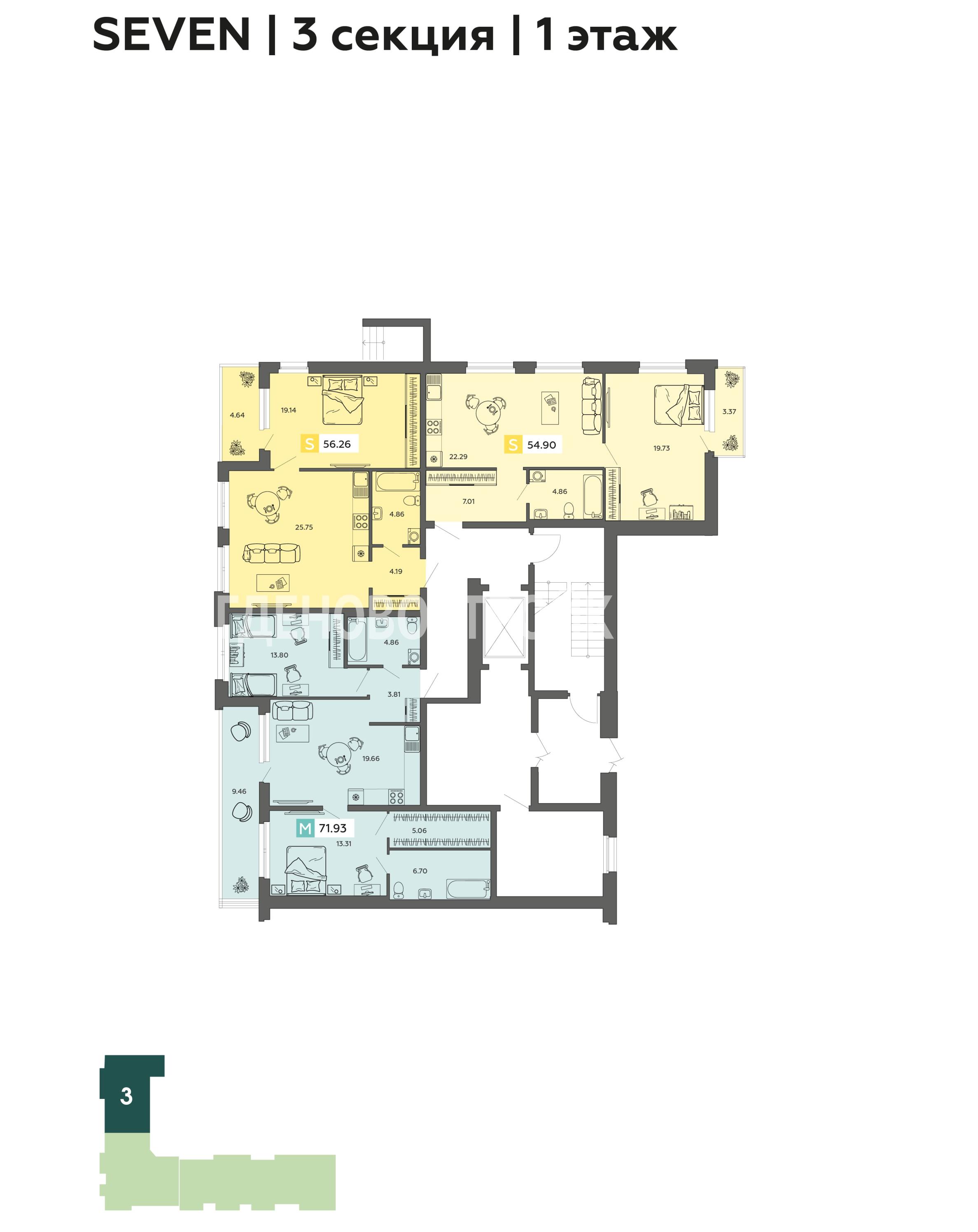| 3-комн. | от 69.46 кв.м | от 10.52 млн. ₽ |
