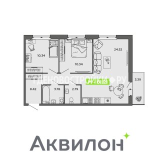 2-комн.Площадь: 61.21м2