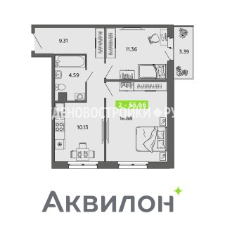 2-комн.Площадь: 55.66м2