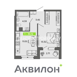 Продажа квартиры: 1-комн., 35.12 кв.м, 4.68 млн.руб. (id:166624)