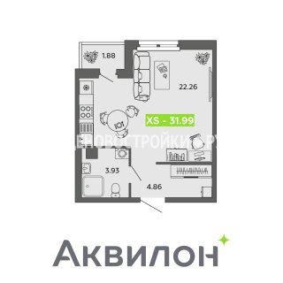 СтудияПлощадь: 31.99м2