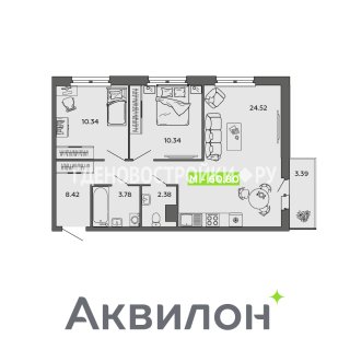 2-комн.Площадь: 60.8м2