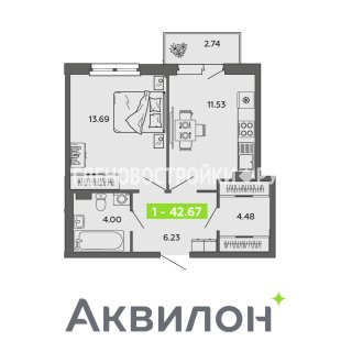 Продажа квартиры: 1-комн., 42.67 кв.м, 5.48 млн.руб. (id:166630)