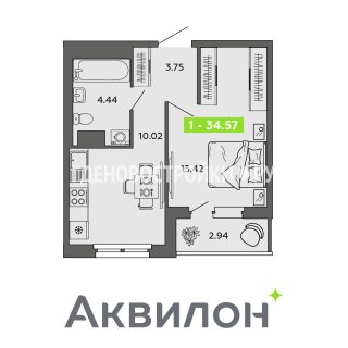 Продажа квартиры: 1-комн., 34.57 кв.м, 4.72 млн.руб. (id:166633)