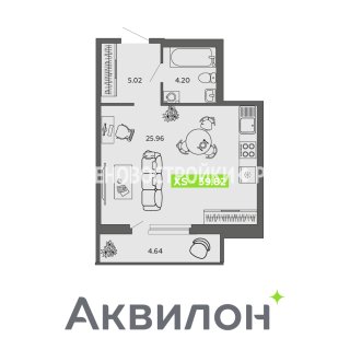СтудияПлощадь: 39.82м2