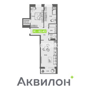 2-комн.Площадь: 62.45м2