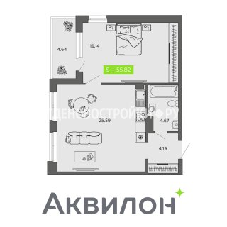 1-комн.Площадь: 55.82м2