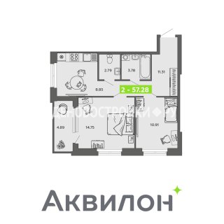 Продажа квартиры: 2-комн., 57.28 кв.м, 7.7 млн.руб. (id:170911)