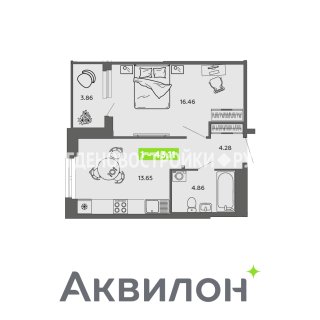Продажа квартиры: 1-комн., 43.11 кв.м, 5.36 млн.руб. (id:170912)