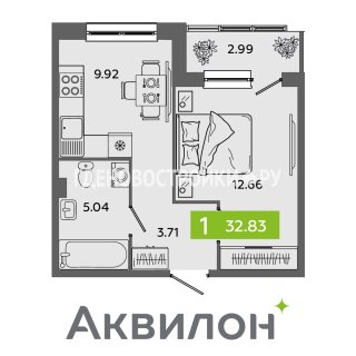Продажа квартиры: 1-комн., 32.83 кв.м, 4.37 млн.руб. (id:151682)