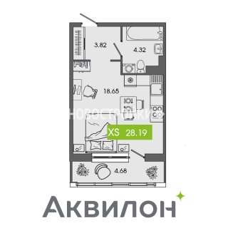 СтудияПлощадь: 28.19м2