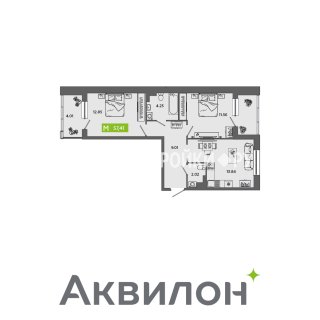 2-комн.Площадь: 57.41м2