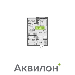 СтудияПлощадь: 26.34м2