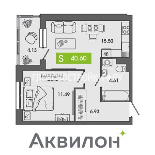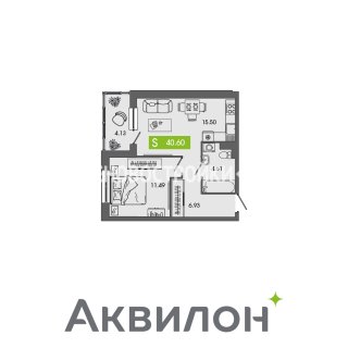 1-комн.Площадь: 40.6м2