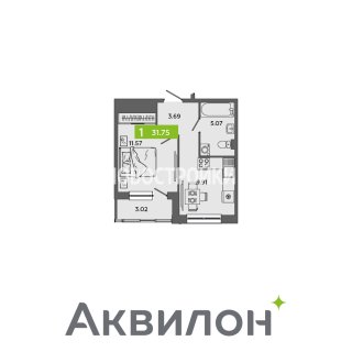 1-комн.Площадь: 31.75м2