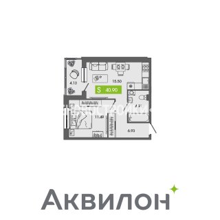 1-комн.Площадь: 40.9м2
