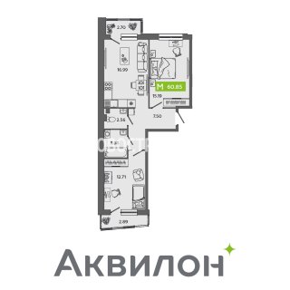 Продажа квартиры: 2-комн., 60.85 кв.м, 8.97 млн.руб. (id:162479)