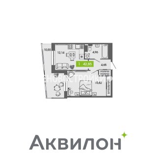 1-комн.Площадь: 42.85м2