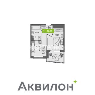 1-комн.Площадь: 32.89м2
