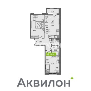 2-комн.Площадь: 59.81м2