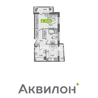 2-комн.Площадь: 46.06м2