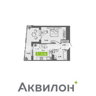 1-комн.Площадь: 41.36м2