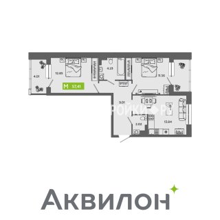 2-комн.Площадь: 57.41м2