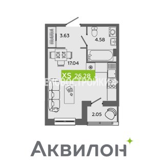 СтудияПлощадь: 26.28м2