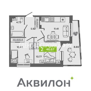 Продажа квартиры: 2-комн., 46.67 кв.м, 6.93 млн.руб. (id:173112)