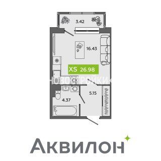 СтудияПлощадь: 26.98м2