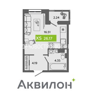 Продажа квартиры: Студия, 26.17 кв.м, 3.41 млн.руб. (id:173127)