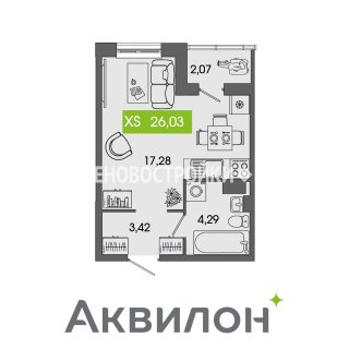 СтудияПлощадь: 26.03м2