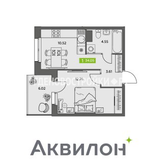 Продажа квартиры: 1-комн., 34.05 кв.м, 4.29 млн.руб. (id:156602)