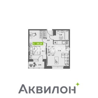 1-комн.Площадь: 39.24м2