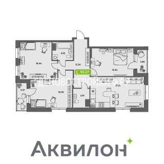 3-комн.Площадь: 92.27м2