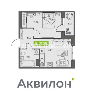 1-комн.Площадь: 37.08м2