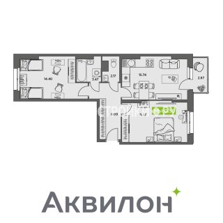2-комн.Площадь: 60.3м2