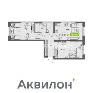 2-комн.Площадь: 59.76м2