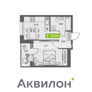 Продажа квартиры: 1-комн., 32.06 кв.м, 4.05 млн.руб. (id:170345)