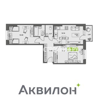 2-комн.Площадь: 60.7м2