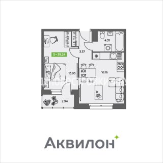 Продажа квартиры: 1-комн., 39.24 кв.м, 4.97 млн.руб. (id:126242)
