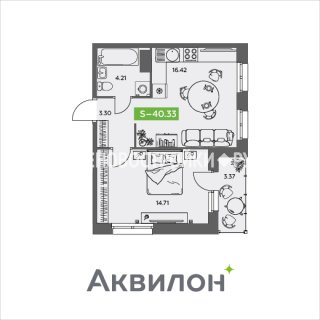 Продажа квартиры: 1-комн., 40.33 кв.м, 5.31 млн.руб. (id:132241)