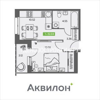 1-комн.Площадь: 32.04м2