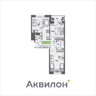 Продажа квартиры: 2-комн., 53.24 кв.м, 7.27 млн.руб. (id:151195)