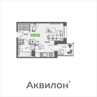 СтудияПлощадь: 26.77м2