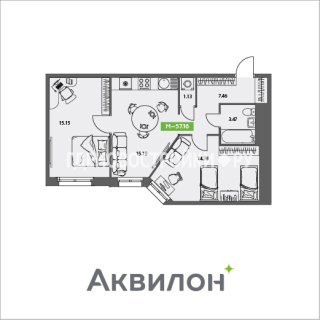 2-комн.Площадь: 57.16м2