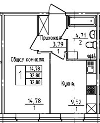 Продажа квартиры: 1-комн., 32 кв.м, 5.25 млн.руб. (id:161381)