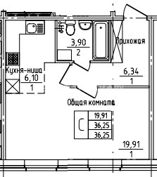 СтудияПлощадь: 36м2