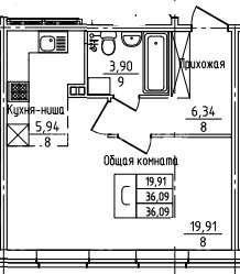 СтудияПлощадь: 36м2
