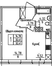 1-комн.Площадь: 32м2
